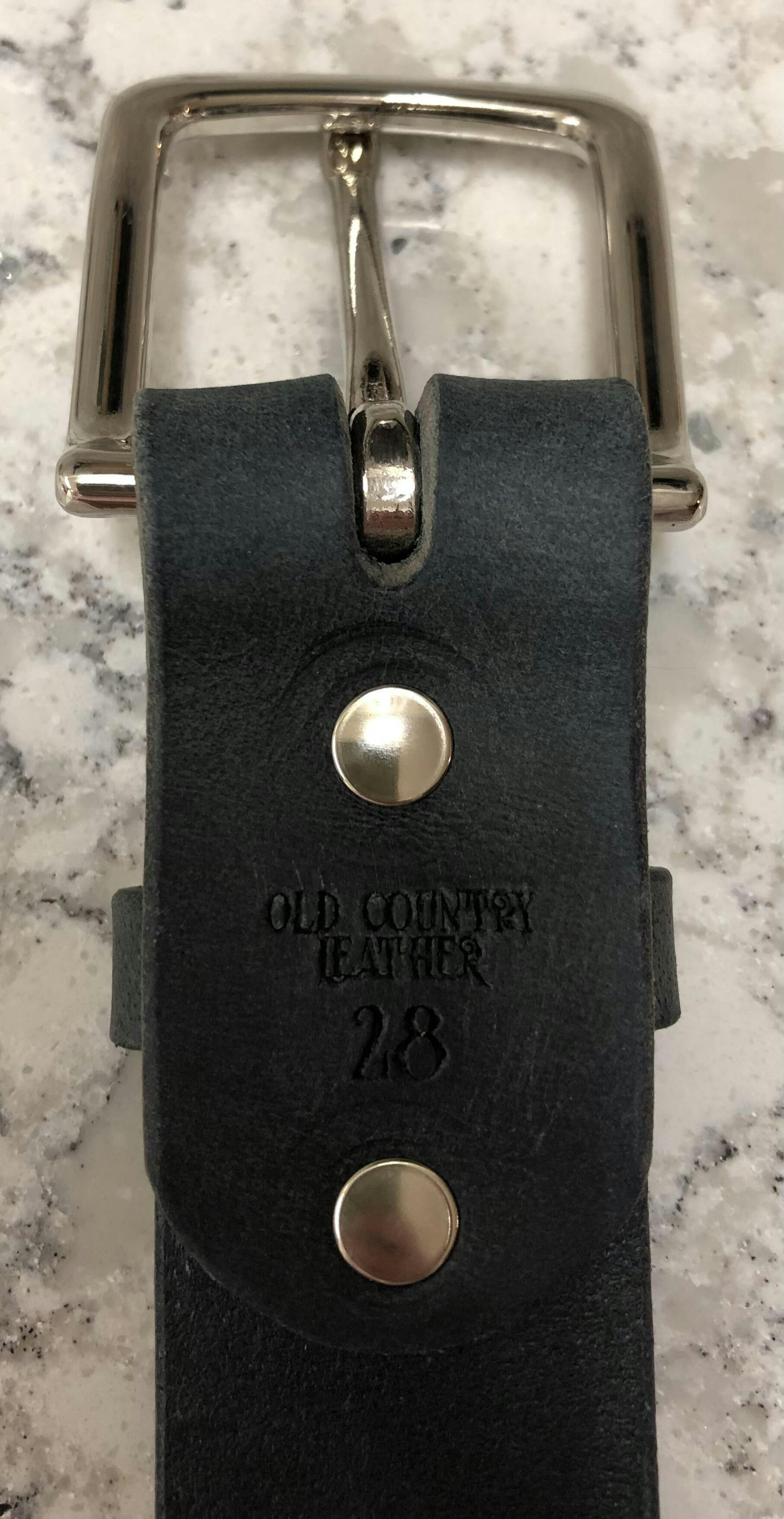This is a New belt option, made from water buffalo it has a lovely feel. A belt you will have for many years to come. A subtle blue belt, a rare fine, this belt is a beautiful belt, a slight distressed look as it bends and ages adding to the true character of this belt.