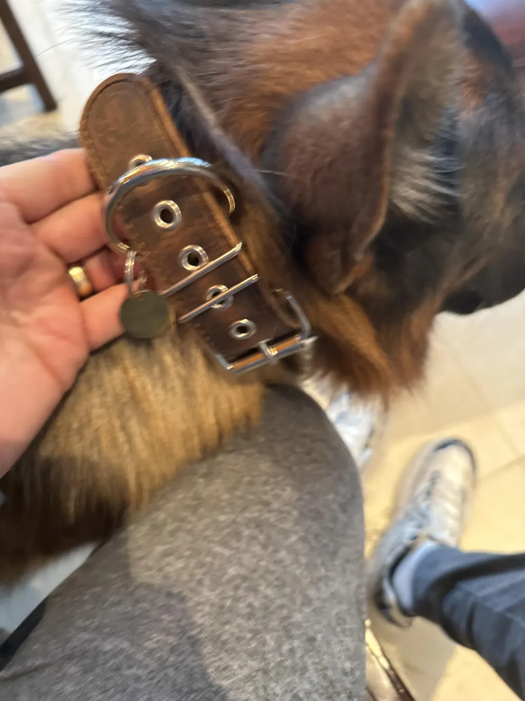 The 2-inch width (after padding) provides substantial presence without being overwhelming, making this collar perfect for dogs who need more than a basic collar but don't require personalization. The distressed leather outer layer develops character with use, creating a unique patina that tells the story of your adventures together.