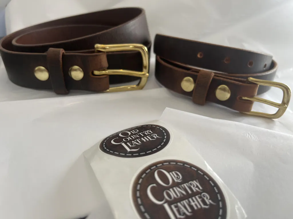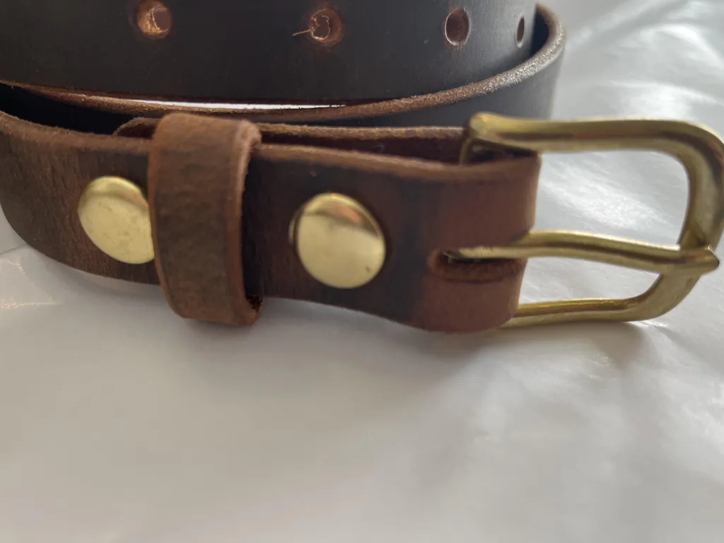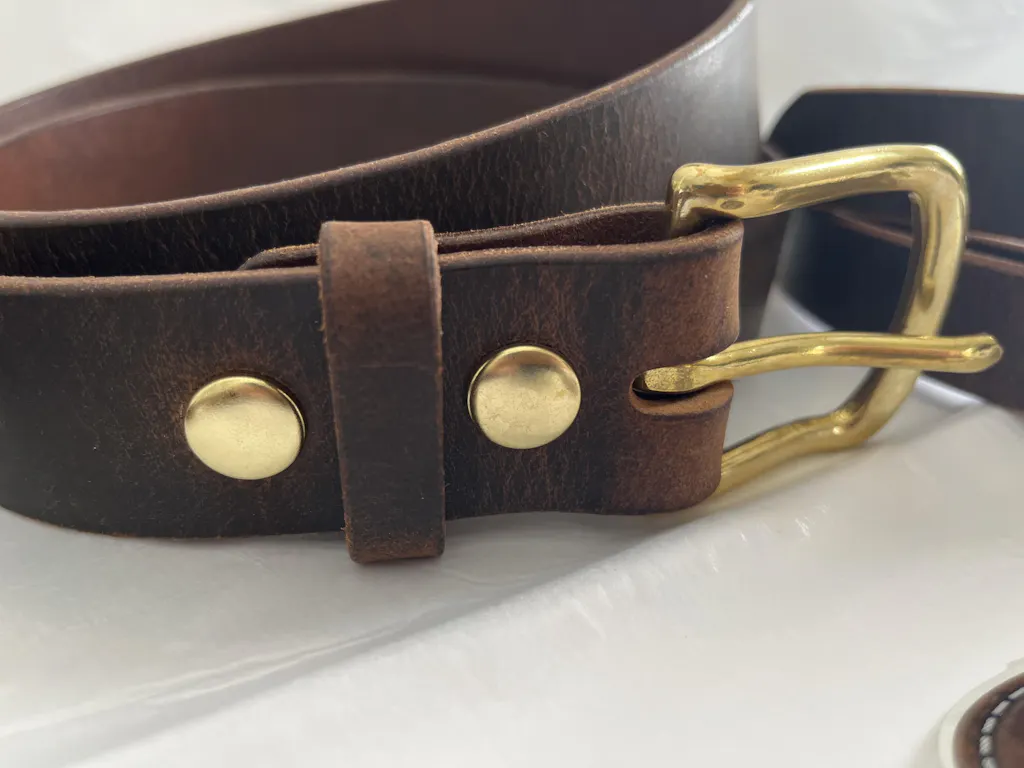 This belt is our most popular belt, once customers feel and see the belt up close they fall in love with it and you will too. A belt you will have for many years to come. This belt is a beautiful combination of distressed leather that has a lovely pull up to it. Paired with a lovely brass buckle that ages with the belt to keep that rustic feel.